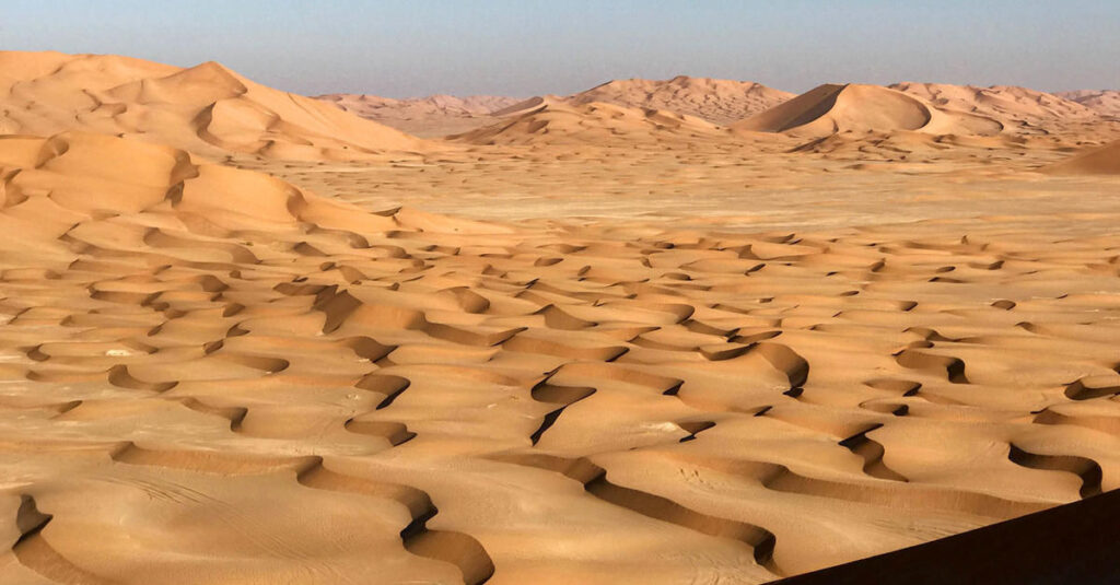 The Rub’ al Khali is “Empty” only by name. In reality, it is a landscape of massive, 250-meter-high star dunes that “sing” when the wind hits them just right. Entering from Thumrait (north of Salalah), the desert transitions from flat gravel plains into a surreal ocean of orange and red dunes. This is where you come to find absolute silence and the clearest night skies in the Sultanate.
